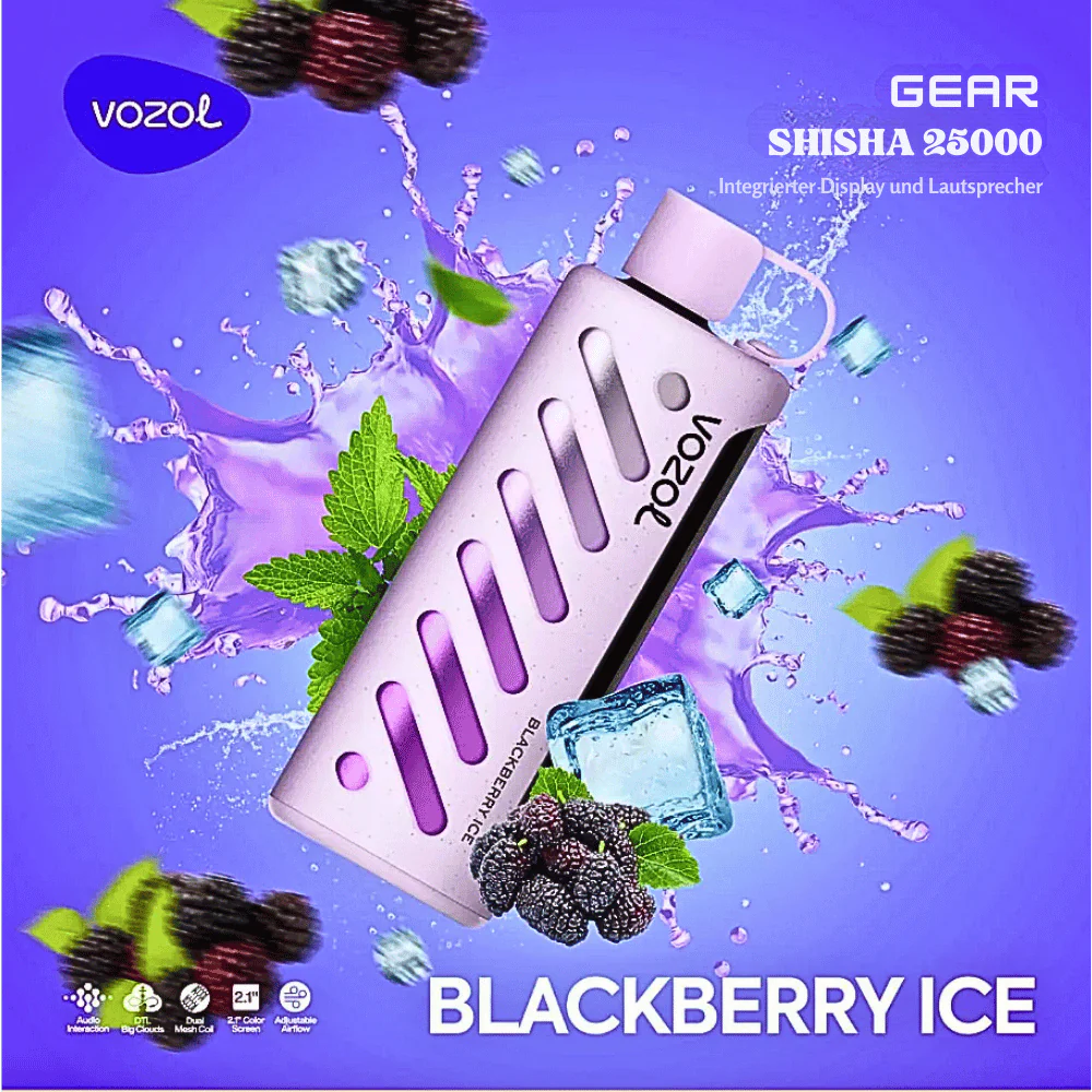 Der VOZOL GEAR Shisha 25K VAPE ist mehr als nur ein Einweg-Vaporizer – er verändert die Welt des Dampfens grundlegend. Mit seiner beeindruckenden Zugzahl, der fortschrittlichen Technologie und dem unwiderstehlichen Blackberry Ice-Geschmack ist dieses Gerät darauf ausgelegt, die Bedürfnisse selbst der anspruchsvollsten Dampfer zu erfüllen. Egal, ob Sie nach einem zuverlässigen Vaporizer für den Alltag oder einem Premium-Gerät für besondere Anlässe suchen, der VOZOL GEAR 25K VAPE bietet alles.